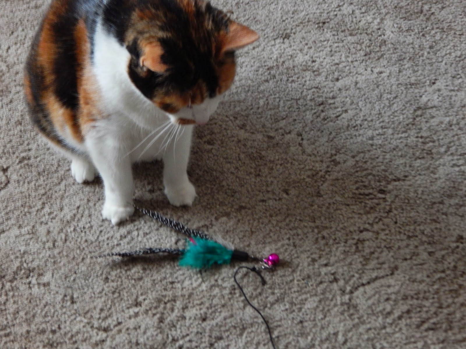 I have had a hard time introducing new toys to Gaby that doesn't have catnip in them, but I didn't have a problem with this toy. I dropped the feathers on the floor and she quickly sneaked over to investigate. I lifted up the feathers with the rod, began waving it around and Gaby went crazy. She absolutely had to catch the feathers. Now Gaby has a short attention span, so she got bored and left the room to get a drink of water. I left the toy on the floor. She returned to the room a few minutes later and went directly to the feathers. Gaby began playing with the toy again. While the toy seems to be sturdy for the time being, I dont' know how long the feathers are going to last as Gaby is determined to yank them out with her teeth. Overall, I'm pretty impressed with the Petoyo™ Birds Flying Feather Cat Teaser Toy and Gaby seems to be happy with it too.